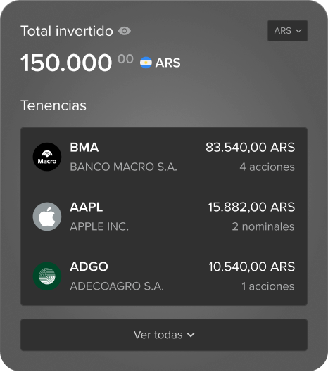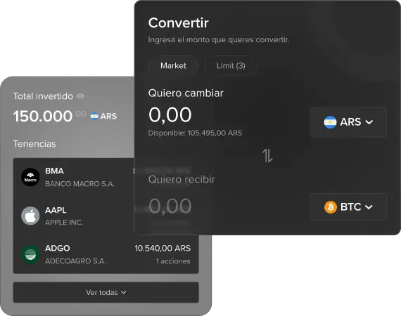 En fiwind podés invertir en distintos tipos de activos como criptomonedas, dólares o cedears y acciones.